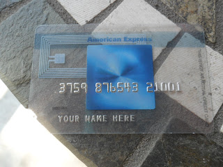 I get a ton of bullshit credit card come ons in the mail, and I'm always amused by the ones that go to the trouble to include a fake card with their pitch. I especially love it when the fake cards say "YOUR NAME HERE". The cheezier and faker, the better. Although, Amex has some nice fake cards: